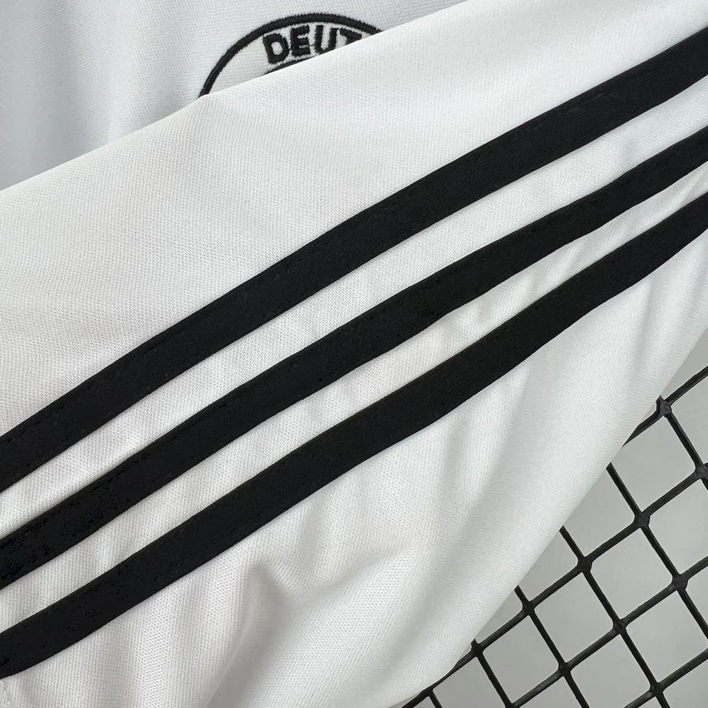-Composition: 100% Polyester-Predominant Color: White-Style: For Male-Origin: Thailand-Shield: Embroidery-Club: Germany-Sleeve: Short-Collar: V-Neck