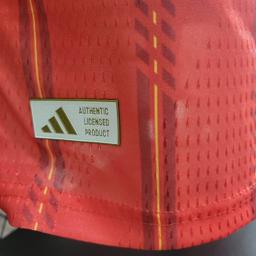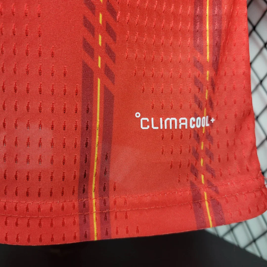 -Composition: 100% Polyester-Predominant Color: Red-Style: For Male-Origin: Thailand-Shield: Silica Gel-Club: Spain-Sleeve: Short-Collar: Round-Neck-Design: Slim Fit